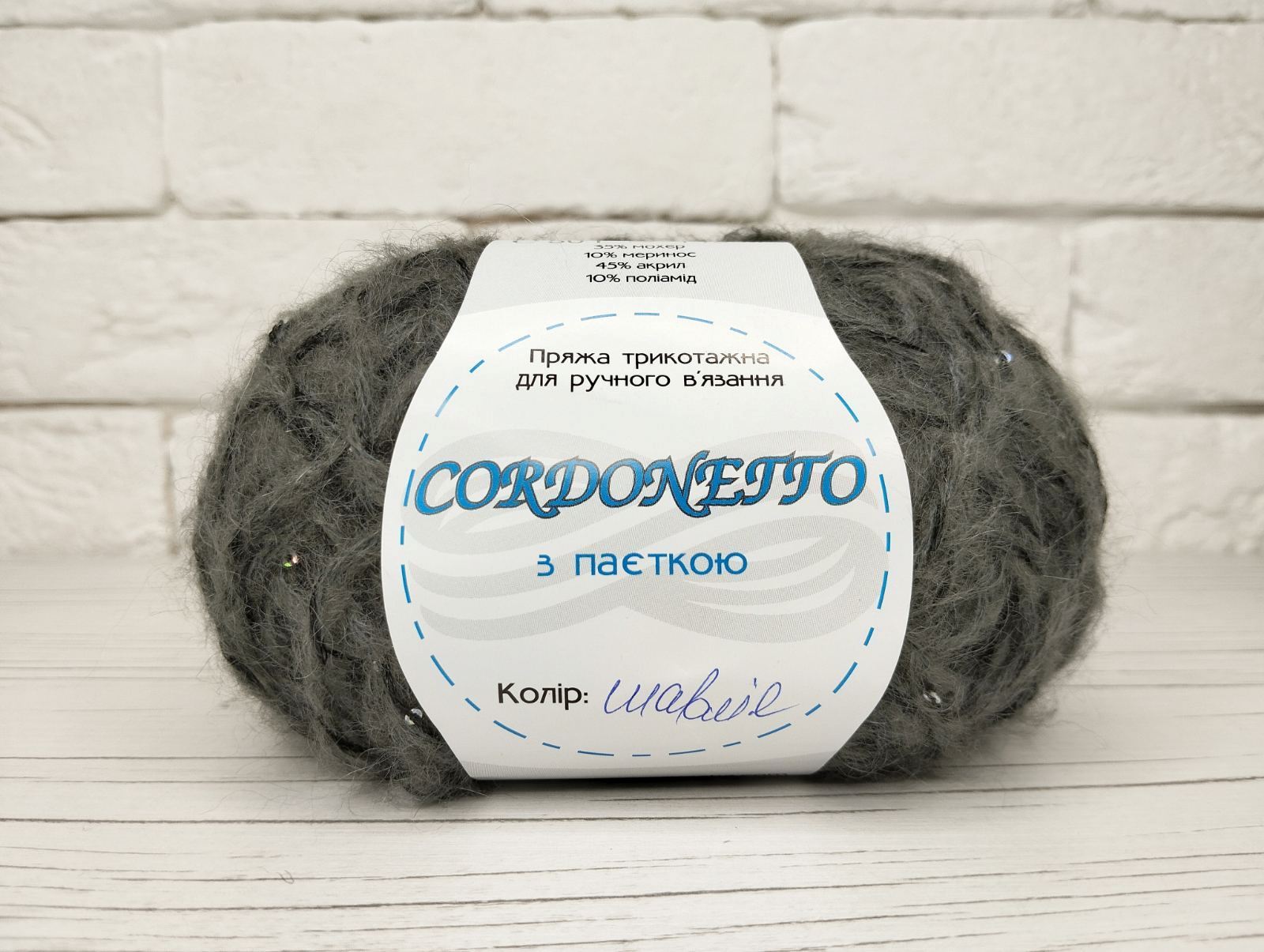 Склад: 35% мохер; 10% меринос; 45% акрил; 10% поліамід.